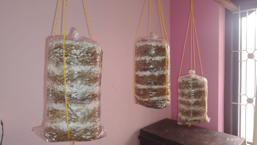 Instead of using traditional straw (വൈക്കോൽ), we chose to invest in an alternative substrate—a bit more expensive, yes, but absolutely worth it for the cleanliness, consistency, and ease of handling it offered. We wanted to do it right, even if it meant taking the slightly harder route.