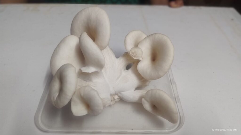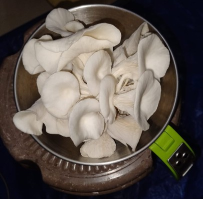 About a month later, we harvested our first batch of fully homegrown oyster mushrooms.